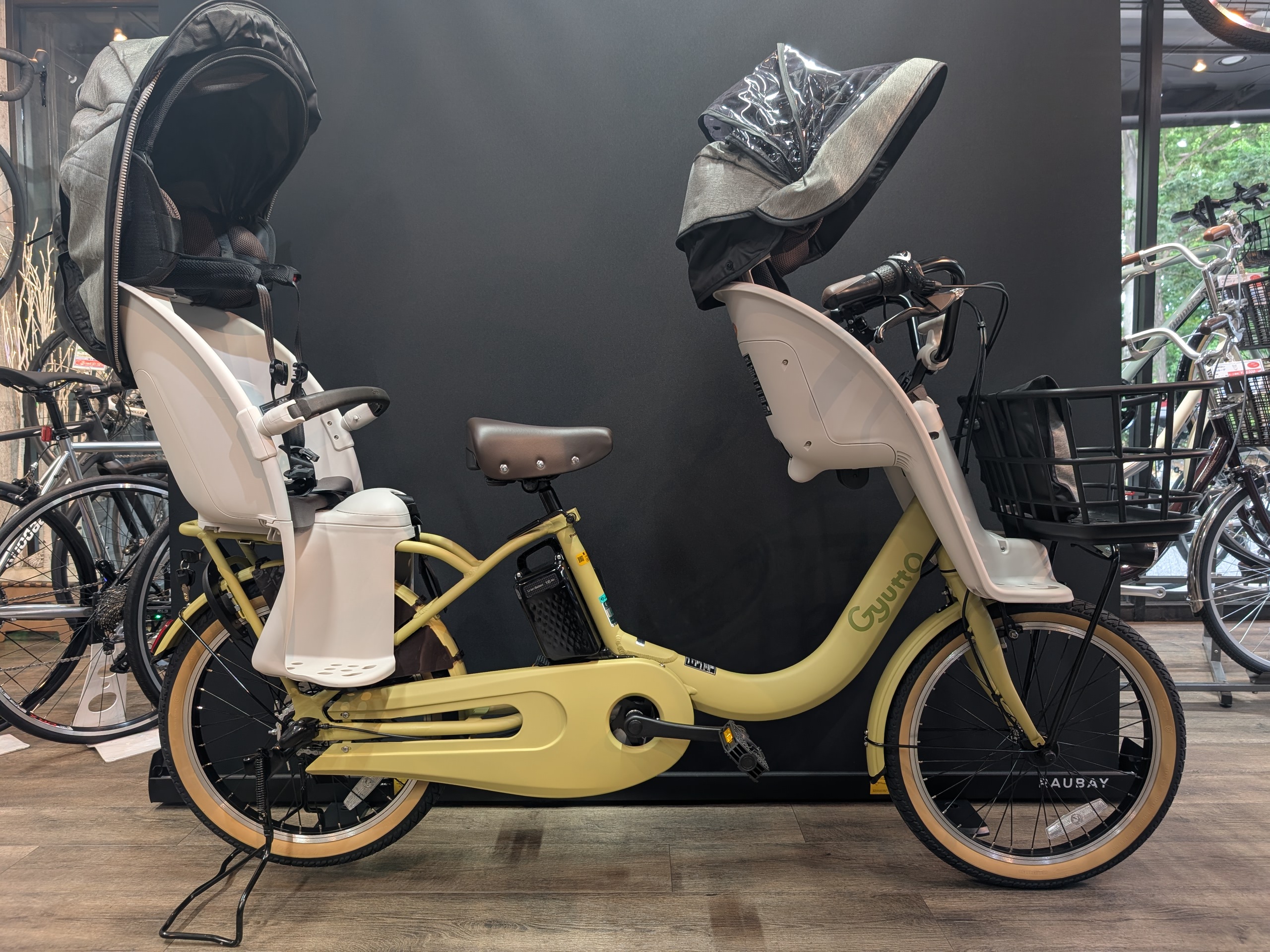 ↑ 上の画像は【ギュット・クルームF・DX】+【クルームリアシート】+【レインカバー】+【後レインカバー】です。