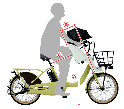 C:従来品よりシートポスト中心とチャイルドシート背もたれの距離が約7cm長い